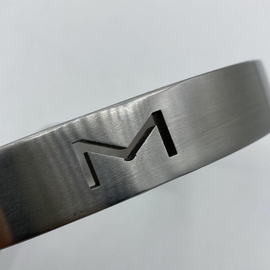 Wide stainless steel cuffs. Ø: 5,8cm x 5,3cm