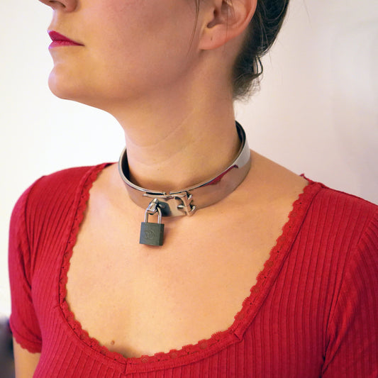 AusverkauftEdelstahl Halseisen mit Vorhängeschloss
