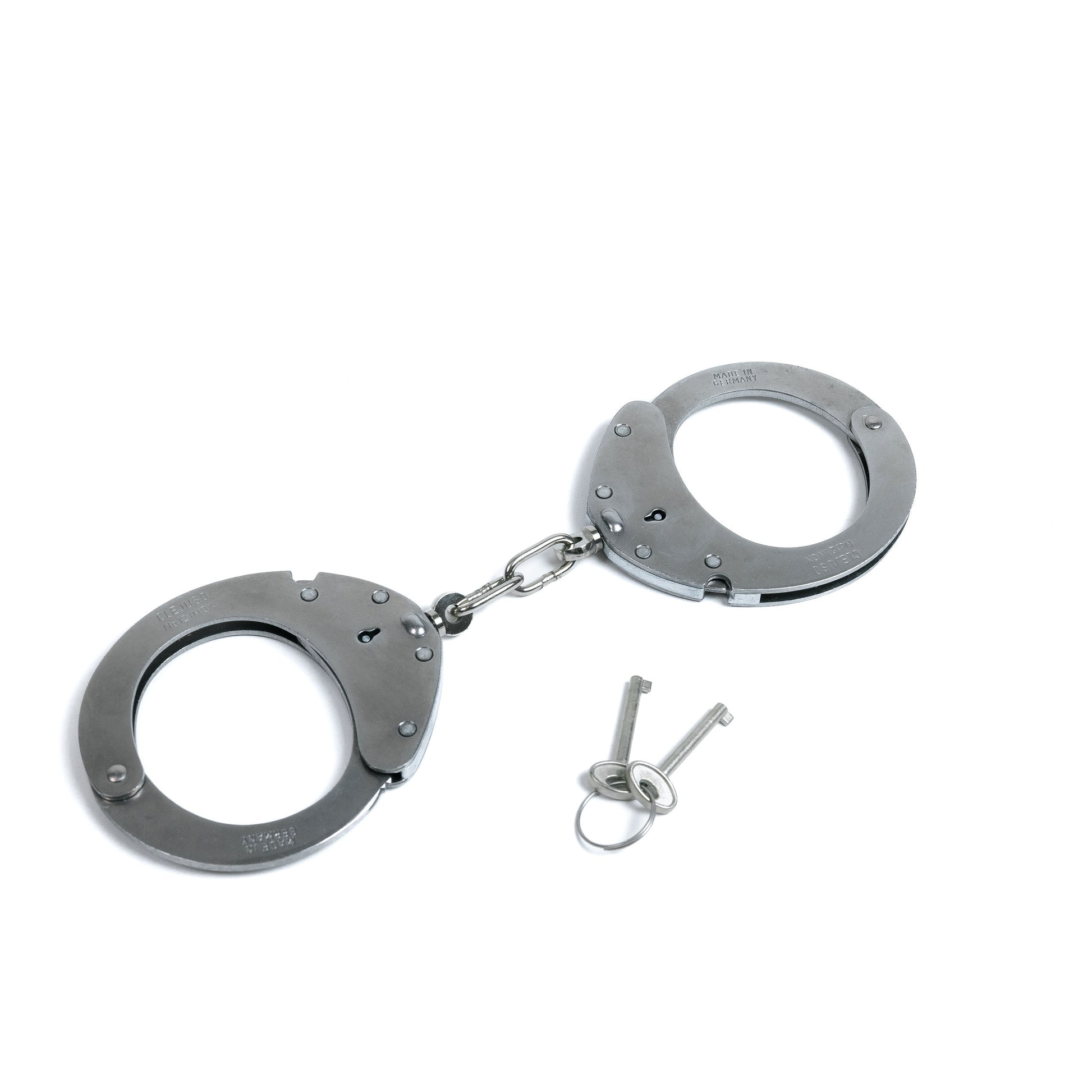 Stabil gefertigt erlaubt die Ausführung zudem eine platzsparende Verstauung. Dafür sorgen die zwei Kettenglieder, die als Verbindung dienen. Für bequemes Abschließen und Abnehmen der Handschellen zeigen sich die Drehgelenke verantwortlich. Insbesondere das Anlegen wird durch die Schnellverriegelung erleichtert und beschleunigt. Auch in Situationen, in denen es hoch hergeht, ist auf diese Handfessel also Verlass.