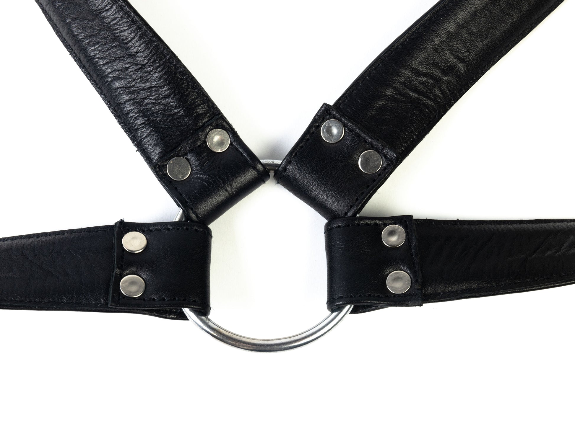 Turn your back into a powerful anchor point: This sturdy leather back harness is designed for serious restraint play. Pair it with our Handpillory or your favorite cuffs—the solid O-ring keeps everything securely in place. Perfect for solo sessions or as a sleek bondage accessory in partner play. Maximum control, minimal wiggle room.