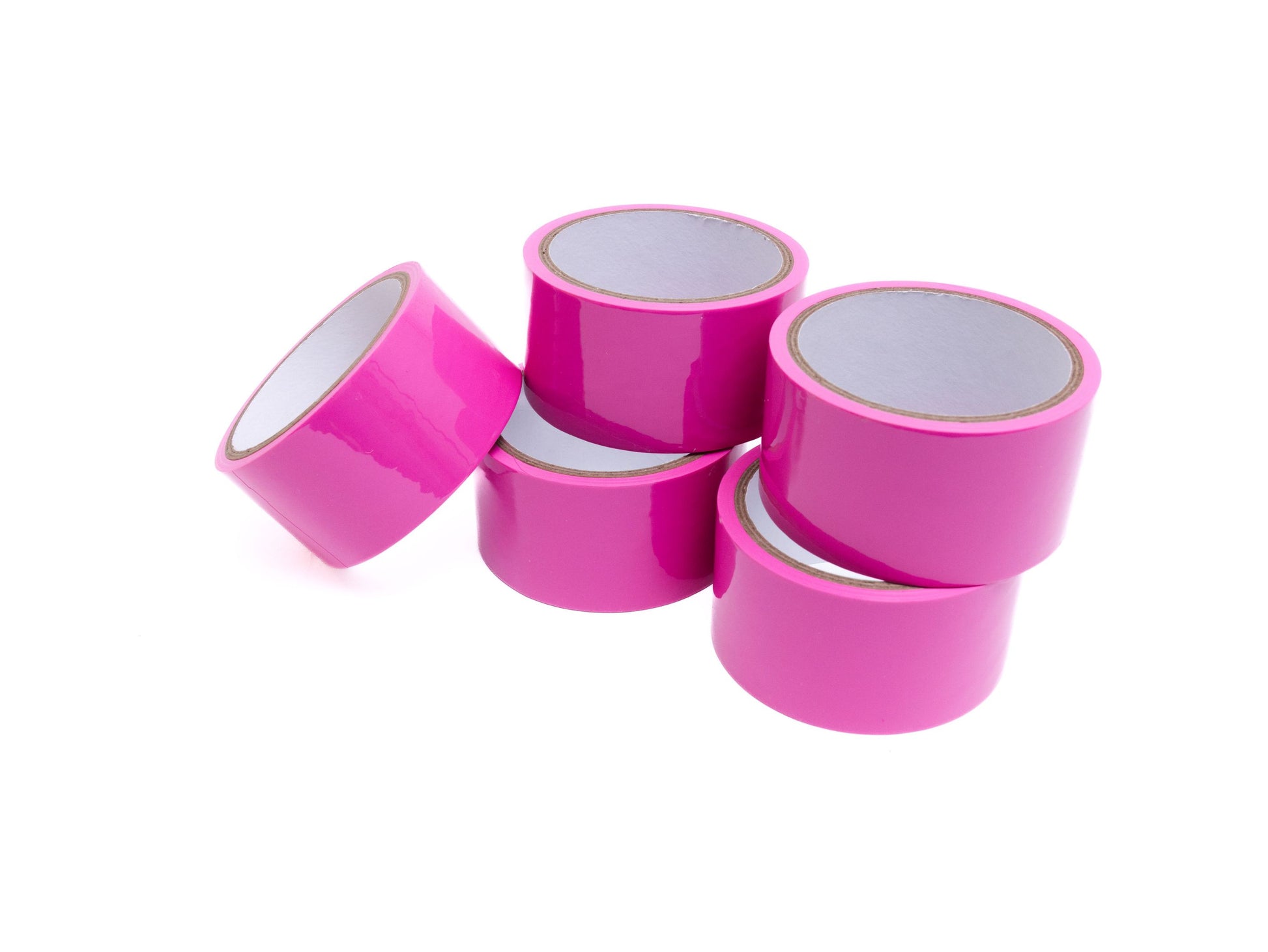 The tape sticks only to itself and thus spares hair, clothing and skin, no sticking, no pain when removing, the perfect tape for your sub.